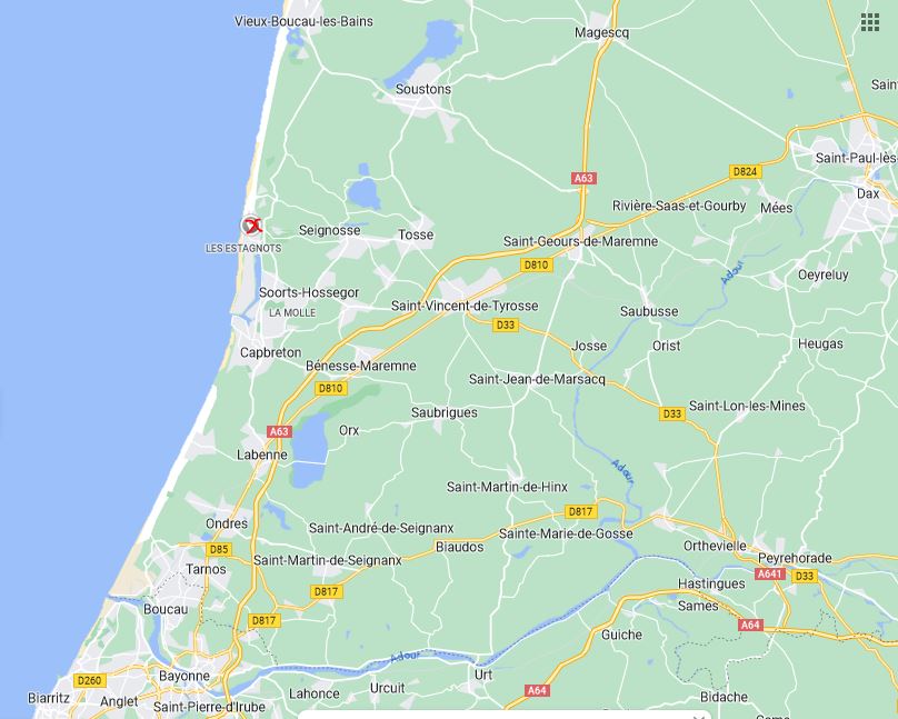 Zum Atlantik fahren wir nur knapp 2 Stunden. Seignosse liegt ewas nördlich und die Fahrt dauert 2,5 Stunden.