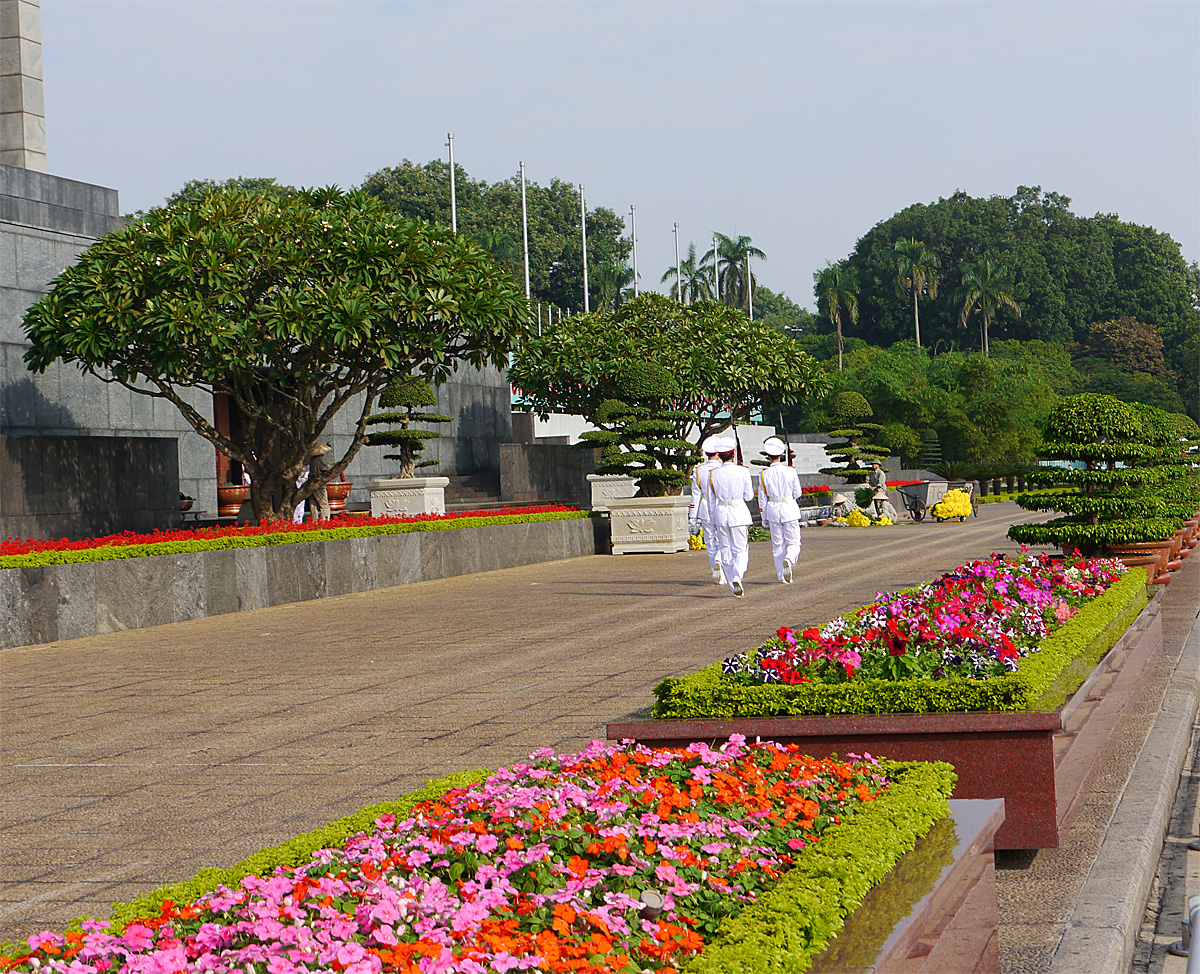 Wir erreichten kurz vor 9 Uhr zur Wachablösung das Hồ Chí Minh Mausoleum.