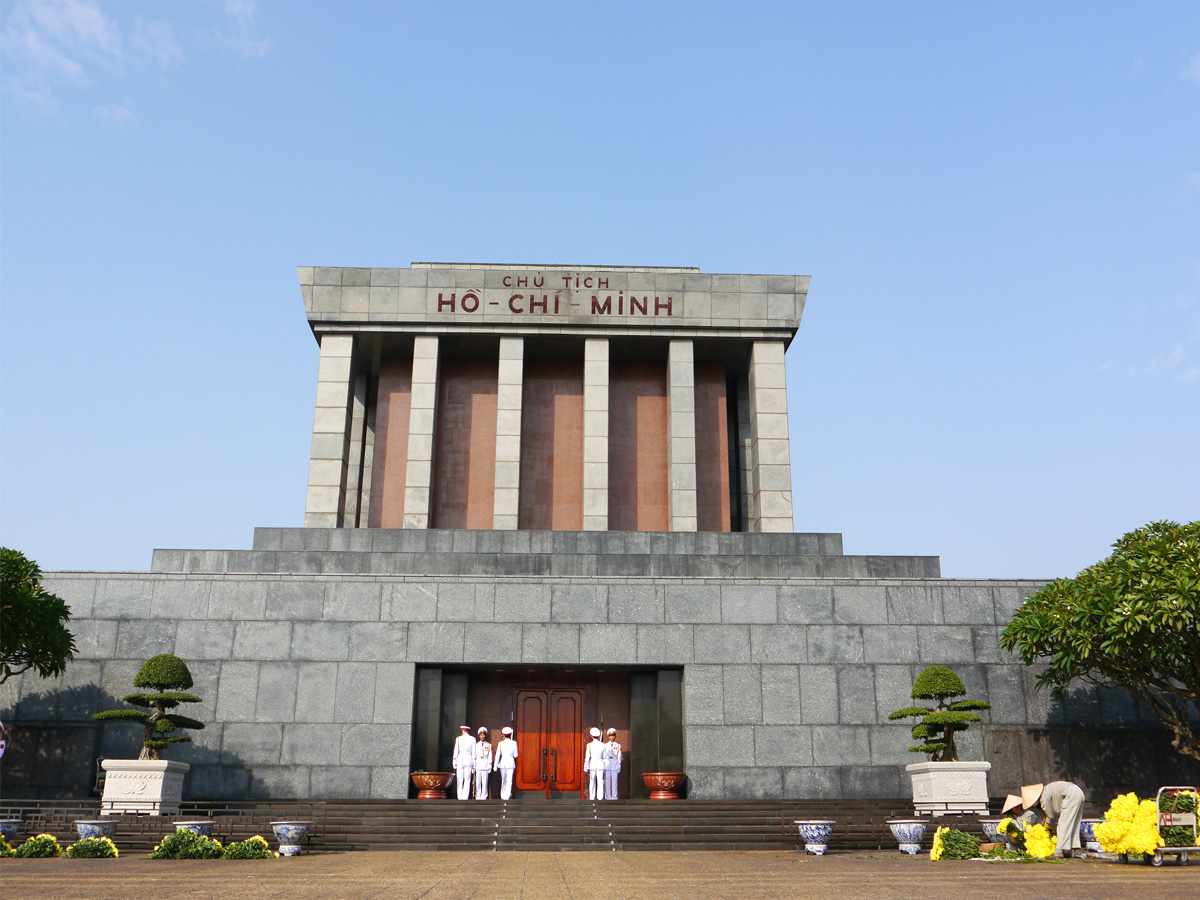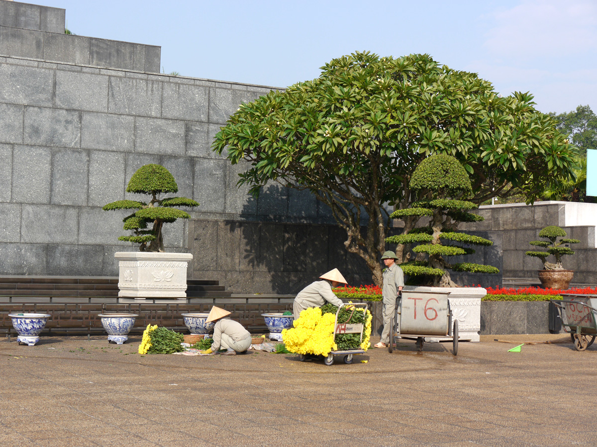 Das Mausoleum ist jedes Jahr vom 5. September bis Anfang Dezember geschlossen, weil dann Ho Chi Minhs Körper zur Restaurierung in Russland weilt – und somit war nichts los und wir blieben vor der Türe …