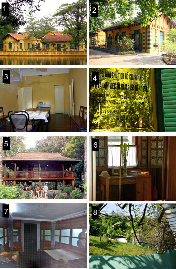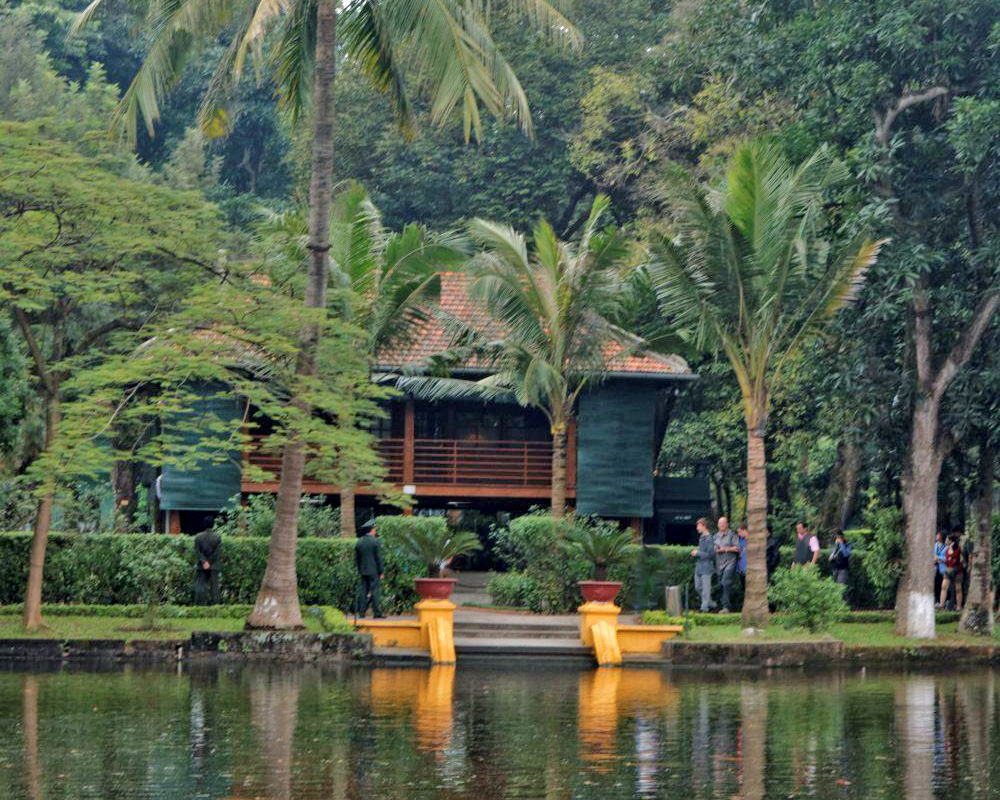 Ho Chi Minh hat abgelehnt hier zu wohnen und bezog zunächst im Arbeiterkomplex (1) ein kleines Häuschen (2, 3, 4), das mitten im Park an einem kleinen See liegt.